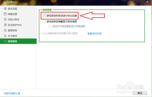 打消勾选【游戏启动时主动进行优化加快】。