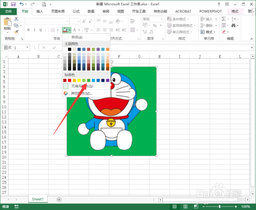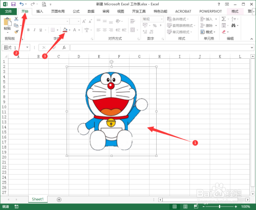 选中图片、在开始菜单点击【填充颜色】按钮,如图所示:
