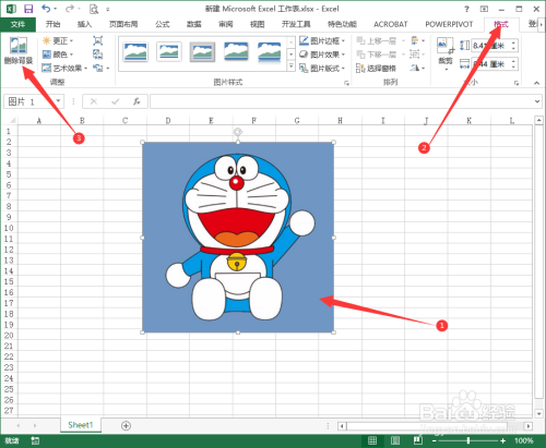 点击照片、点击菜单栏【格局】,点击【删除布景】,如图所示: