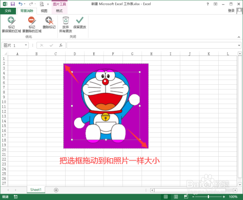 把选框拖动到和照片一样大小,如图所示: