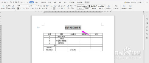在表格上面输入“简约面试评价表”字体加粗、居中、调大,这样财珠扯表格就建造完当作了