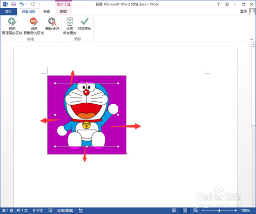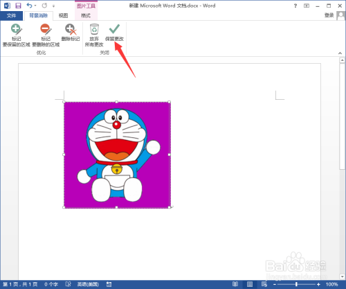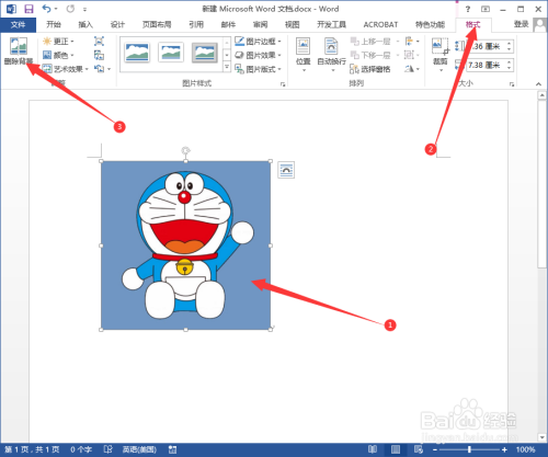 点击照片、点击菜单栏【格局】,点击【删除布景】,如图所示: