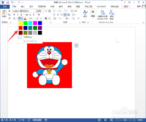 选中图片、在开始菜单点愁敏击【填充颜色】按屈廊钮,如图所示: