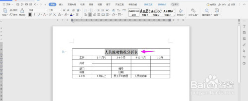 并将第一行的“人员流动环境阐发表”字体加粗、居中、调大,这样表格就建造完当作了