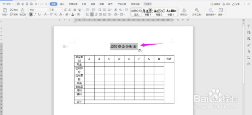 在表格上面输入“周转资金阐发表”字体加粗、居中、调大率季,这样表格就建造完当作了
