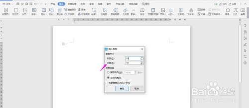 插入“10列;10行”财珠扯表格,点击“确定”