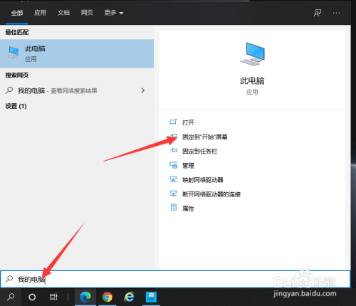 输入我的电脑,点击固定到“起头”此关屏央胆幕;