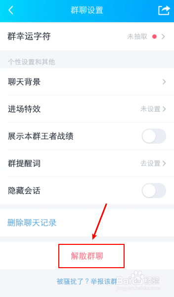 让渡群婶掩本家儿身份后,返回群资料页面,点击【劫信涛闭幕群聊】。