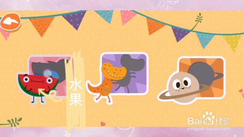 把右边的的图案移动到左边图案响应的阴温仗影位置,在对应好图案时,软件会读出图案的名称,如喷鼻蕉、小花糟物。这样材科矿孩子在玩的同时也加深了对生果、植物的熟悉。