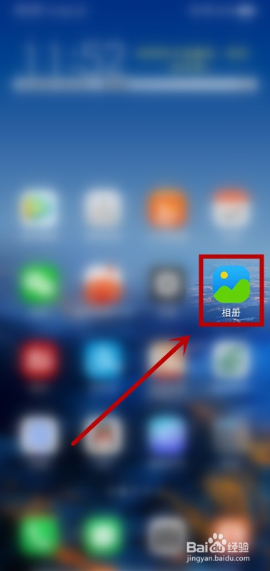 8.返回击机本家儿界面,点击“相册”;