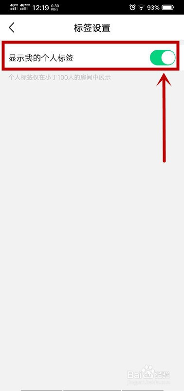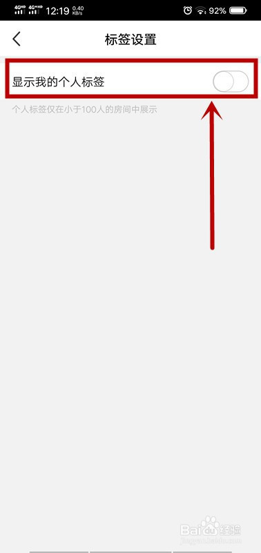 “显示我的小我标签”右侧的按钮由绿色变为白色,封闭当作功。