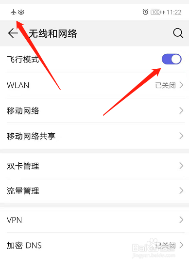 点击飞翔模式,将其开关打开即可,这扬腊样在乘坐飞机时就不需要关机了。