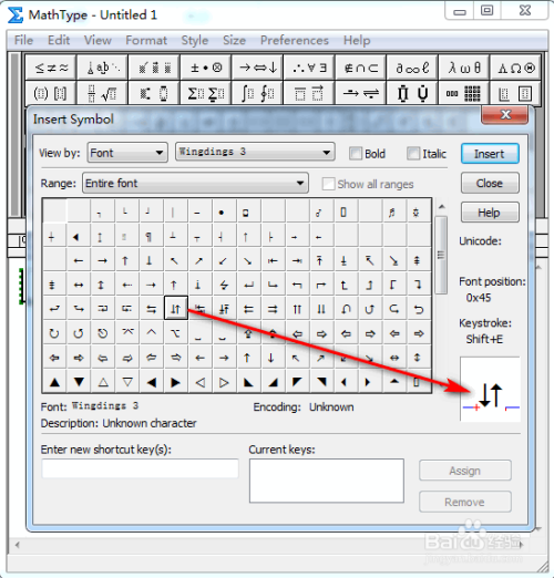在弹出的对话框中,将“查看”设置为“字体”以及“Wing dings 3”,其他连结默认,具体如图所示:
