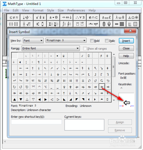 在弹出的对话框中,将“查看”设置为“字体”以及“Wing dings 3”,其他连结默认,具体如图所示: