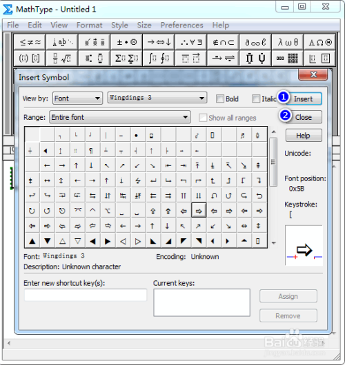 在弹出的对话框中,将“查看”设置为“字体”以及“Wing dings 3”,其他连结默认,具体如图所示: