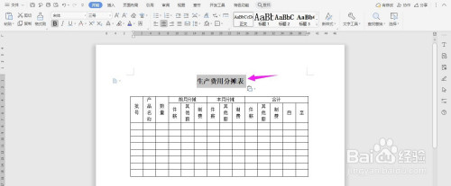 在表格上面财珠扯输入“出产费用分摊表”字体加粗、居中、调大,这样表格就建造完当作了