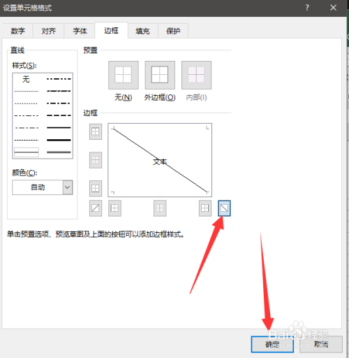 在设巨科伐置单位格格局页面中糟匠点击边框——斜框线——确定;