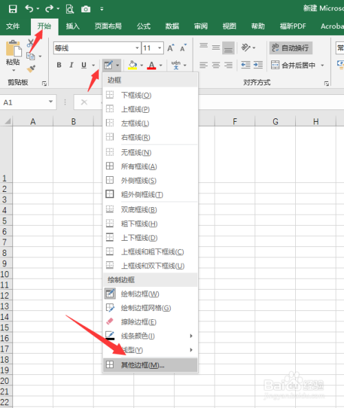 选中单位格,点击起头——边框图标——其他边框;珠联