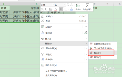 鼠标右击,删除-整行。