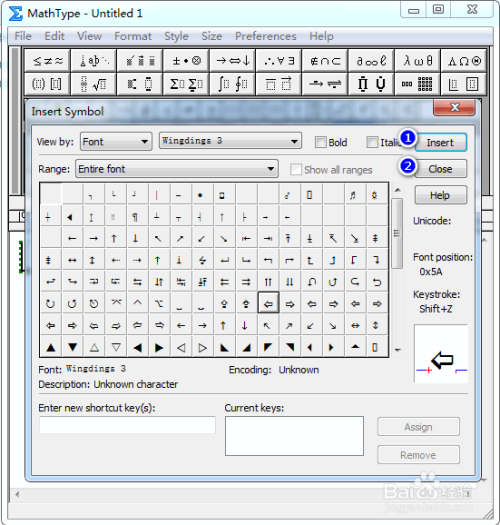 在弹出的对话框中,将“查看”设置为“字体”以及“Wing dings 3”,其他连结默认,具体如图所示: