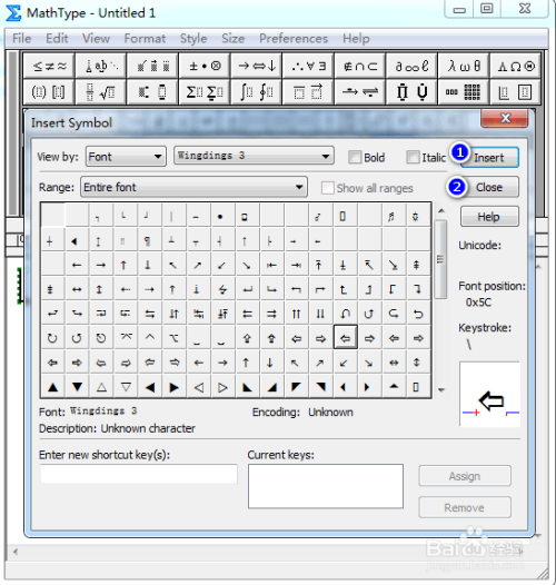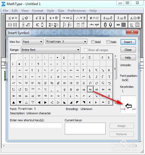 在弹出的对话框中,将“查看”设置为“字体”以及“Wing dings 3”,其他连结默认,具体如图所示: