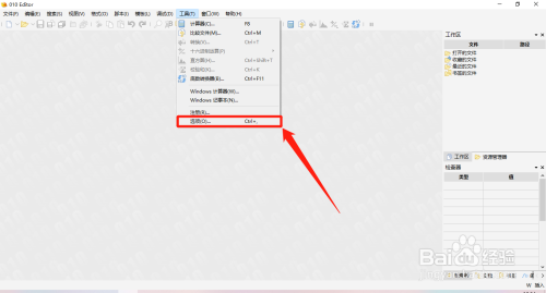 在“010Editor ”本家儿界面中,点击上方的“东西(T)”菜单项。