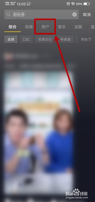 3.在搜索框输入并搜刮“他人抖音名称”;