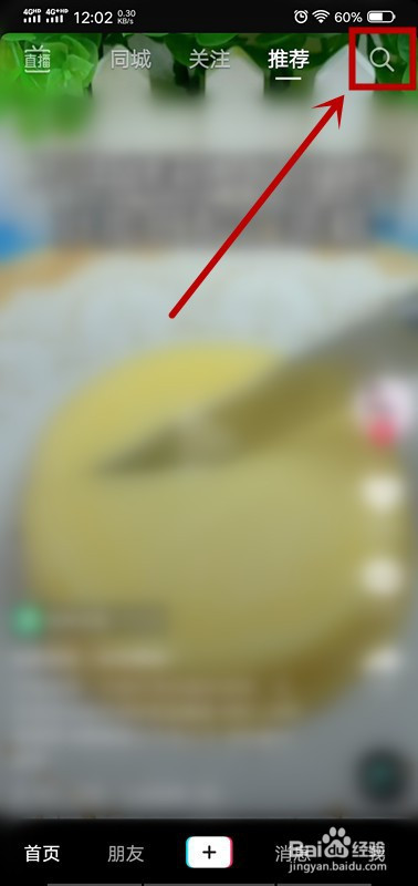 2.点击抖音首页右上角的“搜刮”;