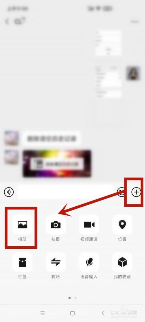 2.点击右侧的 + 小标,再点击相册,图片发出去后进行立马长按该图片。