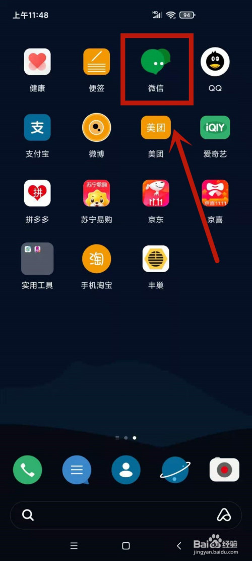叫醒手机系统后,点击微信App。