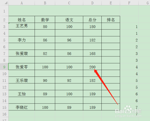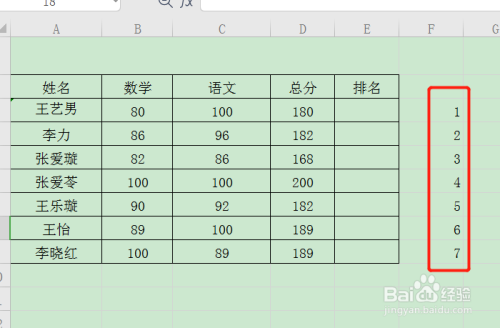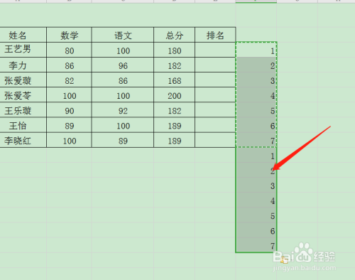 在表格的右侧输入序号。