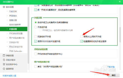 5、去失落“利用3G上网时不进级”前面的勾选,然后点击右下方“确定”即可。