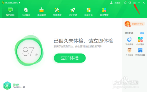 首先安装好360安全卫士,点击快捷体例启动打眠距汽开;