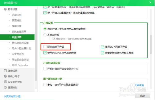 5、将“玩游戏时不进级”前面的勾选去失落即可。