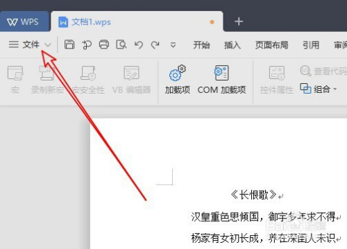 首先在电脑上打开WPS2019,点击左上角的文件菜单。