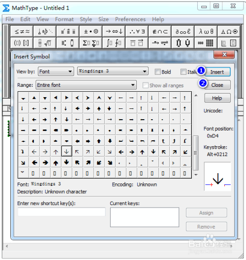 在弹出的对话框中,将“查看”设置为“字体”以及“Wing dings 3”,其他连结默认,具体如图所示: