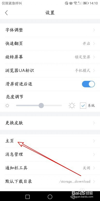 接下来在打信往开的浏览器设置页面,点击本家儿页菜单。