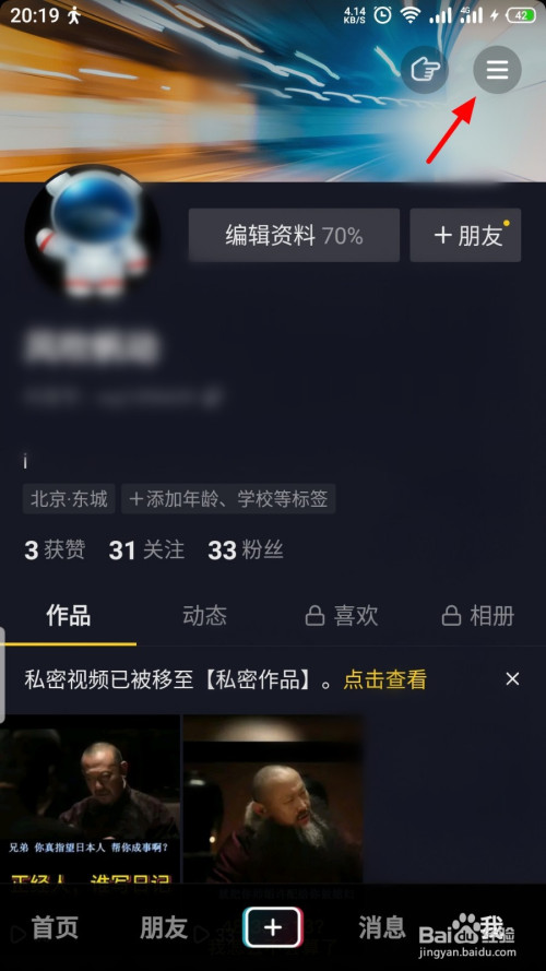进入泉披我页面后,点击 ☰篇争;