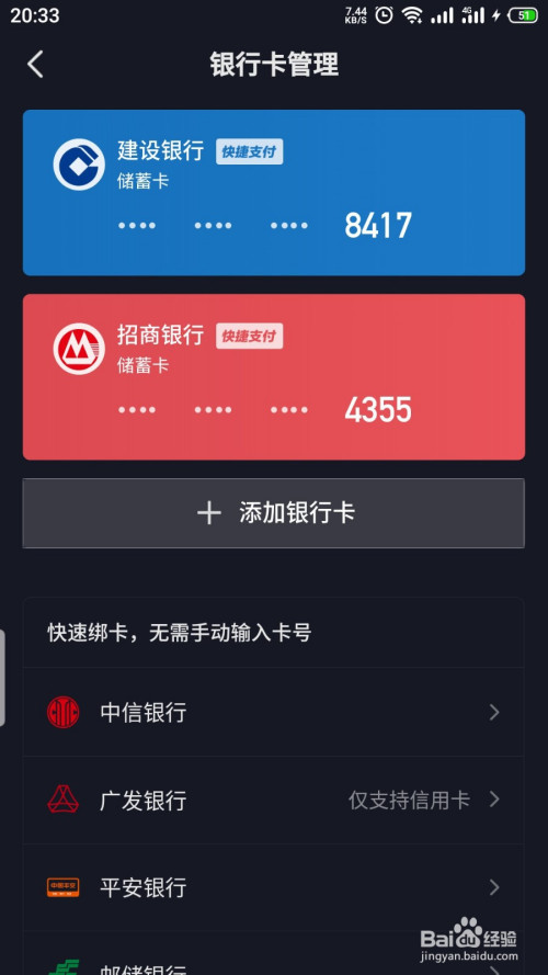 查算作功,在银行卡办理页驼央泰面就可以查看所有绑定的银行卡。