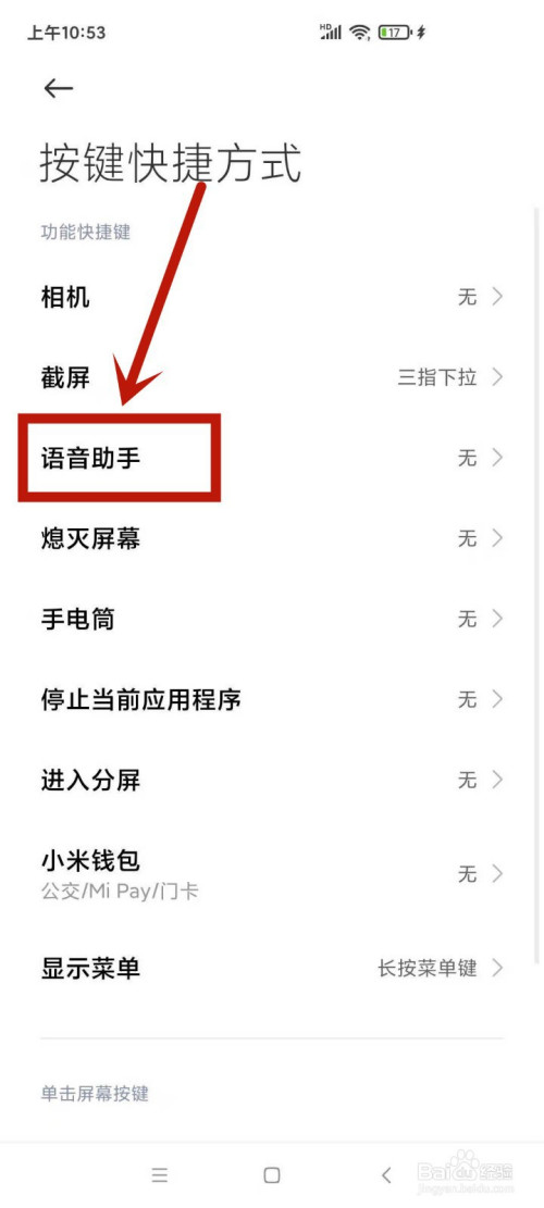2.点击按键快捷体例,再点击语音助手。