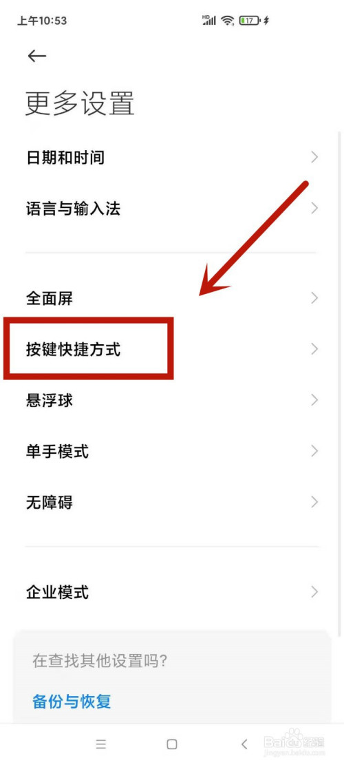 随后,点击进入按键快捷体例选项。