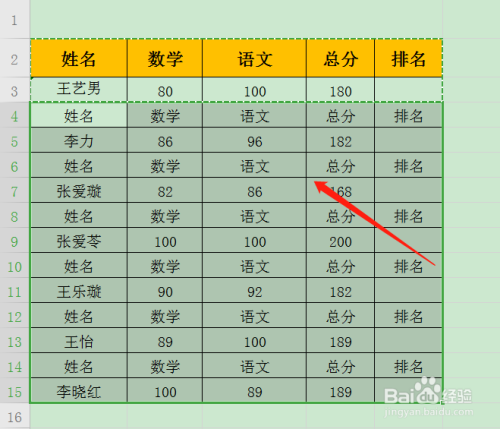 选中前两行表格。
