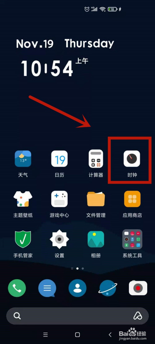 首先在手级塑机桌面,点击进入时钟。