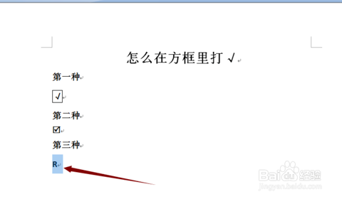 第脾脾三种方式,打出一个大写的R,选中,然后选择字体Wingdings 2,就会主动酿成方框打√了。