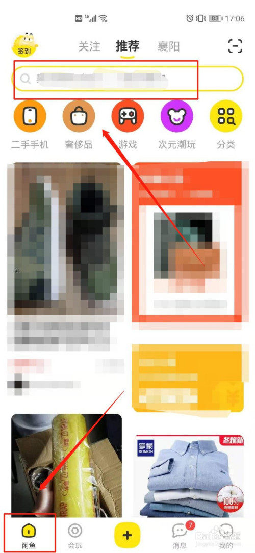 进入闲鱼首页,选择顶部搜索框。