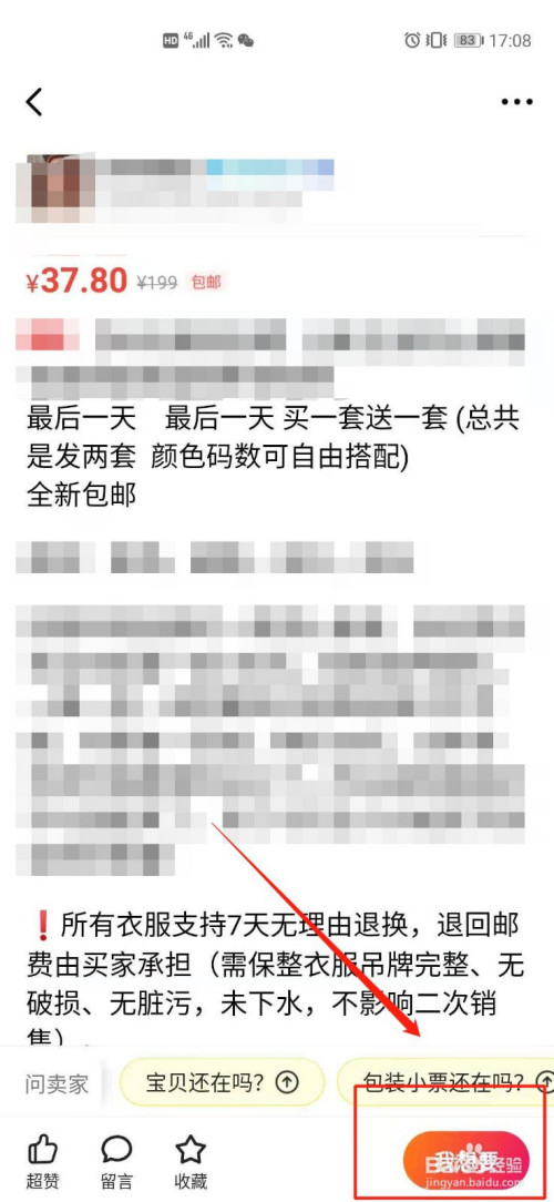 随后与卖家沟通尺码与发货快递等,核实后点击“恩五当即采办”。