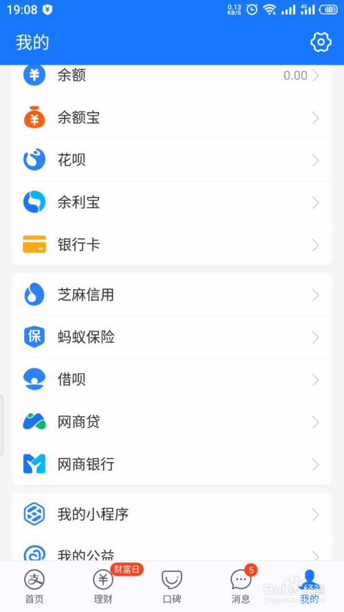在支付宝首页页面,点击我的;