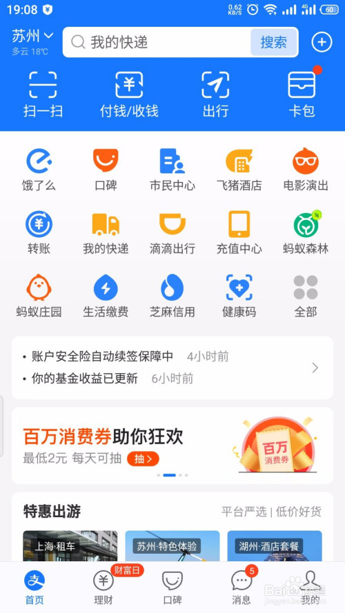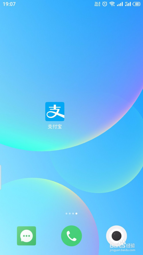手机开机,在手机桌海哨面打开 支付宝;