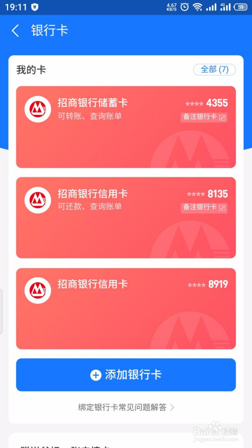 这样就可以查看绑定的所有银行卡了。