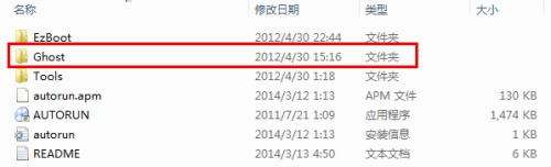 双击打开文件夹后会有如下这些文件,点击Ghost文件夹打开。